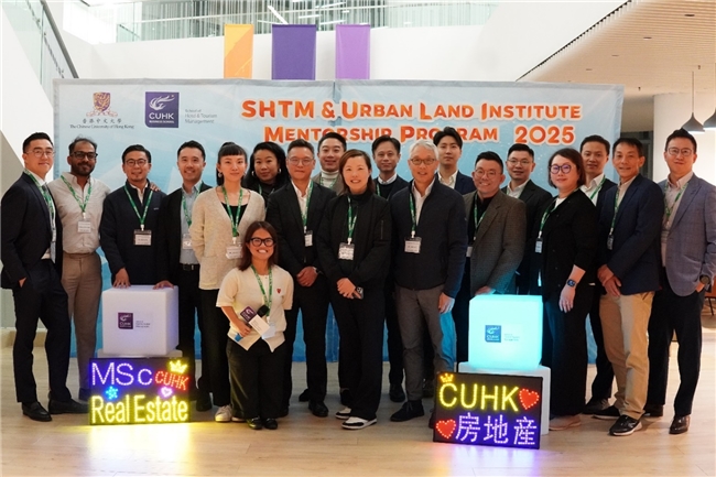2025年11月20日晚,MRE与ULI在港中大郑裕彤楼联合举办 “专业导师计划” 导师与师生交流会。本次活动共有18位来自城市土地学会的导师、80位在港中大修读房地产课程的硕士生及本科生,以及5位在港工作的MRE校友参加。交流会以小组讨论为核心,每位导师轮流与不同学生小组对话,讨论个人发展、职业规划、房地产行业趋势等各种学生感兴趣的话题。